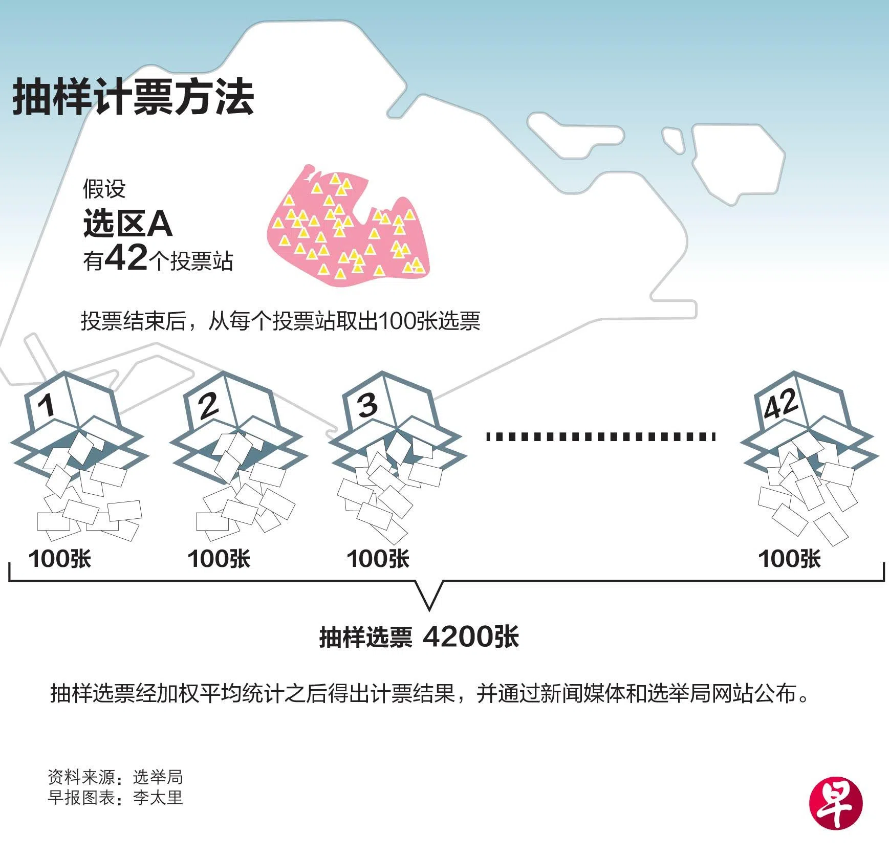 选举局自2015年全国大选起,开始公布抽样计票结果。根据以往经验,抽样计票结果出炉得快,通常和几个小时后公布的正式计票结果差距不大,有助于减少正式结果揭晓前坊间的不实传言和猜测。
