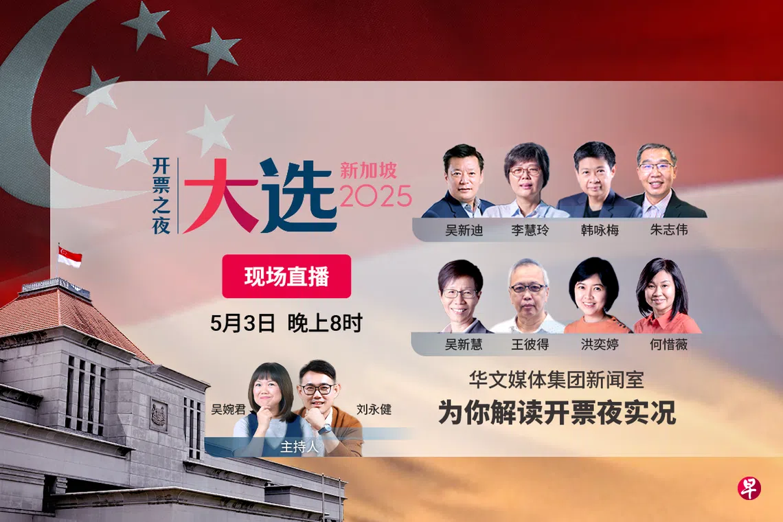 5月3日开票夜晚上8时,《联合早报》推出直播节目,派遣新闻团队前往集合中心等地,带回最新报道,并由新报业媒体信托华文媒体集团新闻室的资深新闻工作者在摄影棚内进行选举观察分析与选情点评。