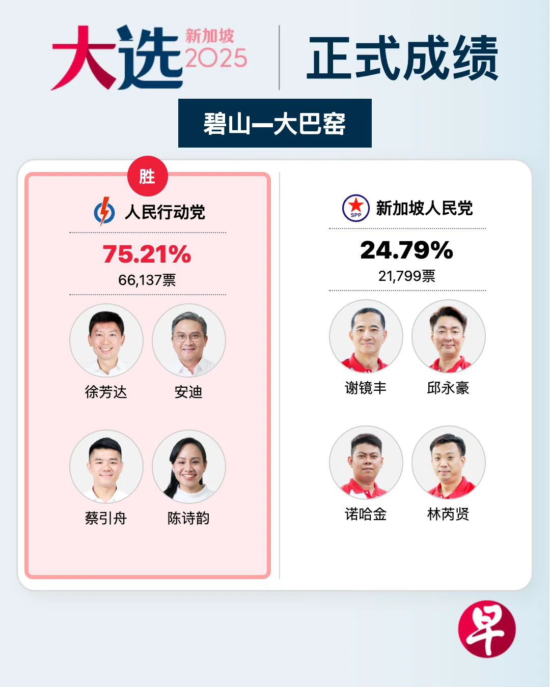 首次领军的交通部长兼财政部第二部长徐芳达,不只击退四度前来挑战的新加坡人民党,为行动党成功捍卫了碧山—大巴窑集选区,还创下14年三届大选以来的最高得票率。