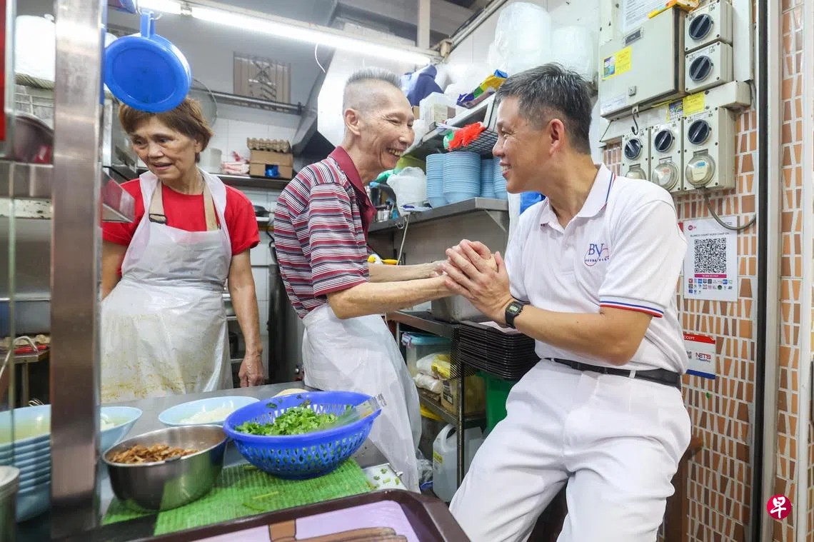 相较于一些选区热闹的团队谢票活动,丹戎巴葛团队的当选议员星期天早上各自走访所负责分区的巴刹和小贩中心,答谢选民。