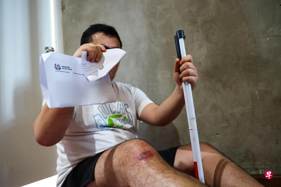 视障男子投诉从住家搭私召车到公司时,私召车司机在错的地点要他下车,过后虽然把他载到公司楼下却侮辱他,还下车推他,在拉扯过程中导致他跌倒膝盖受伤。男子向私召车公司投诉后报警,希望让公众更关注视障群体在日常生活中面对的隐性风险。