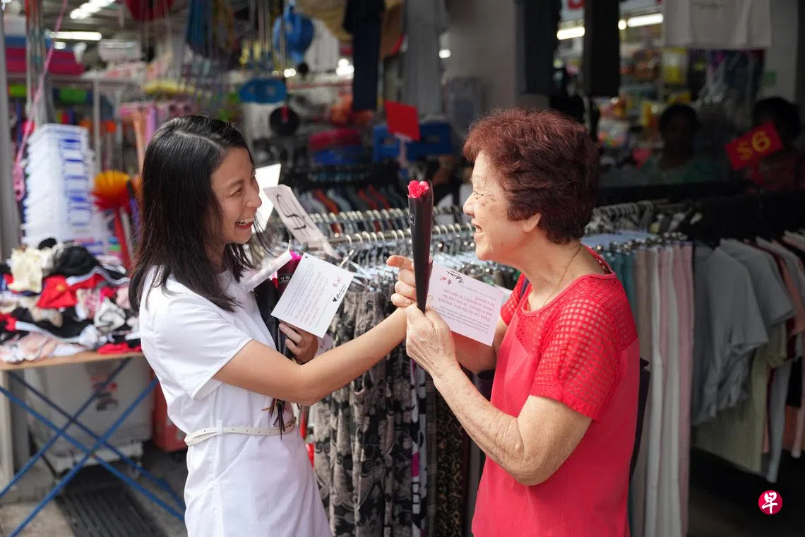 配合母亲节,人民行动党妇女团星期六(5月10日)在全岛多个地点,派发用香皂制成的花朵给母亲们,感谢她们的辛劳与奉献。