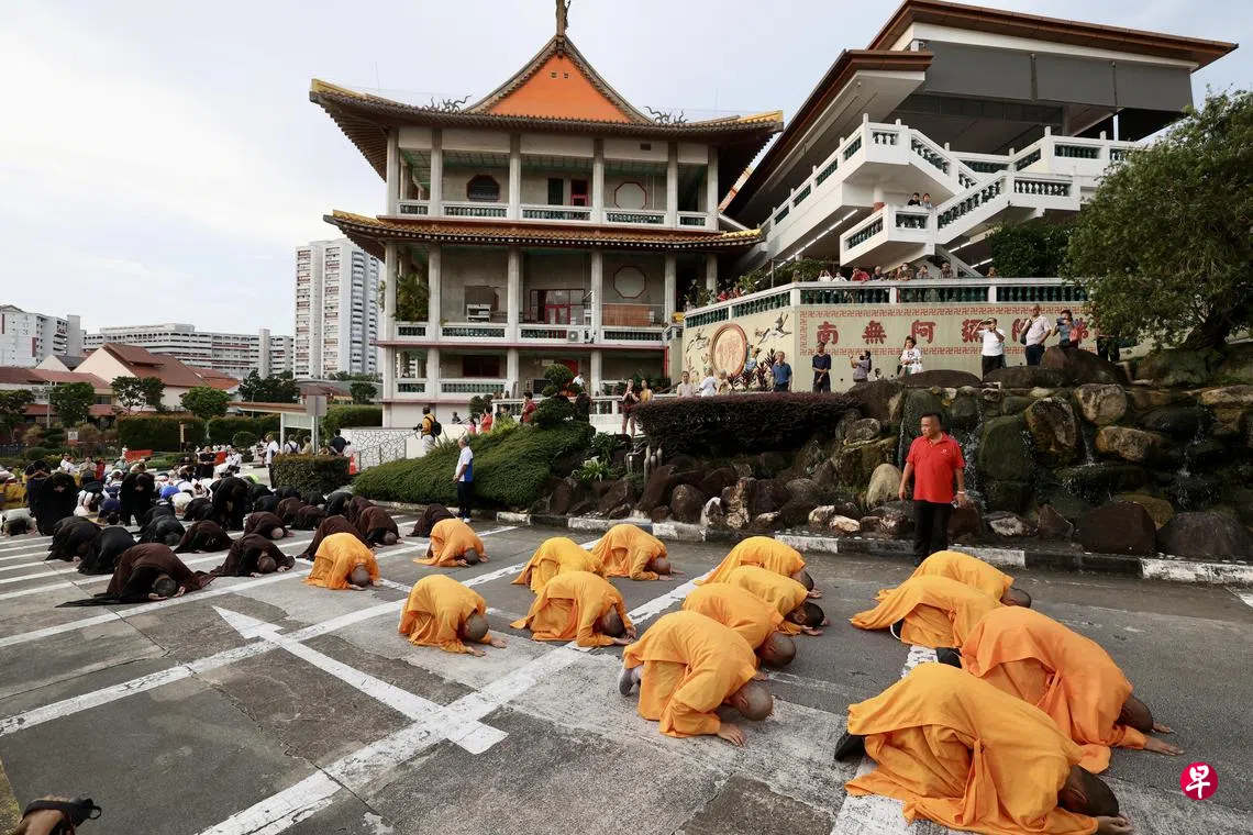 今年的“三步一拜”仪式是疫情后首次只开放现场取票,没有票券的信众会先在无相殿内等候,约晚上10时加入队伍,预计将有1万名信众参与。
