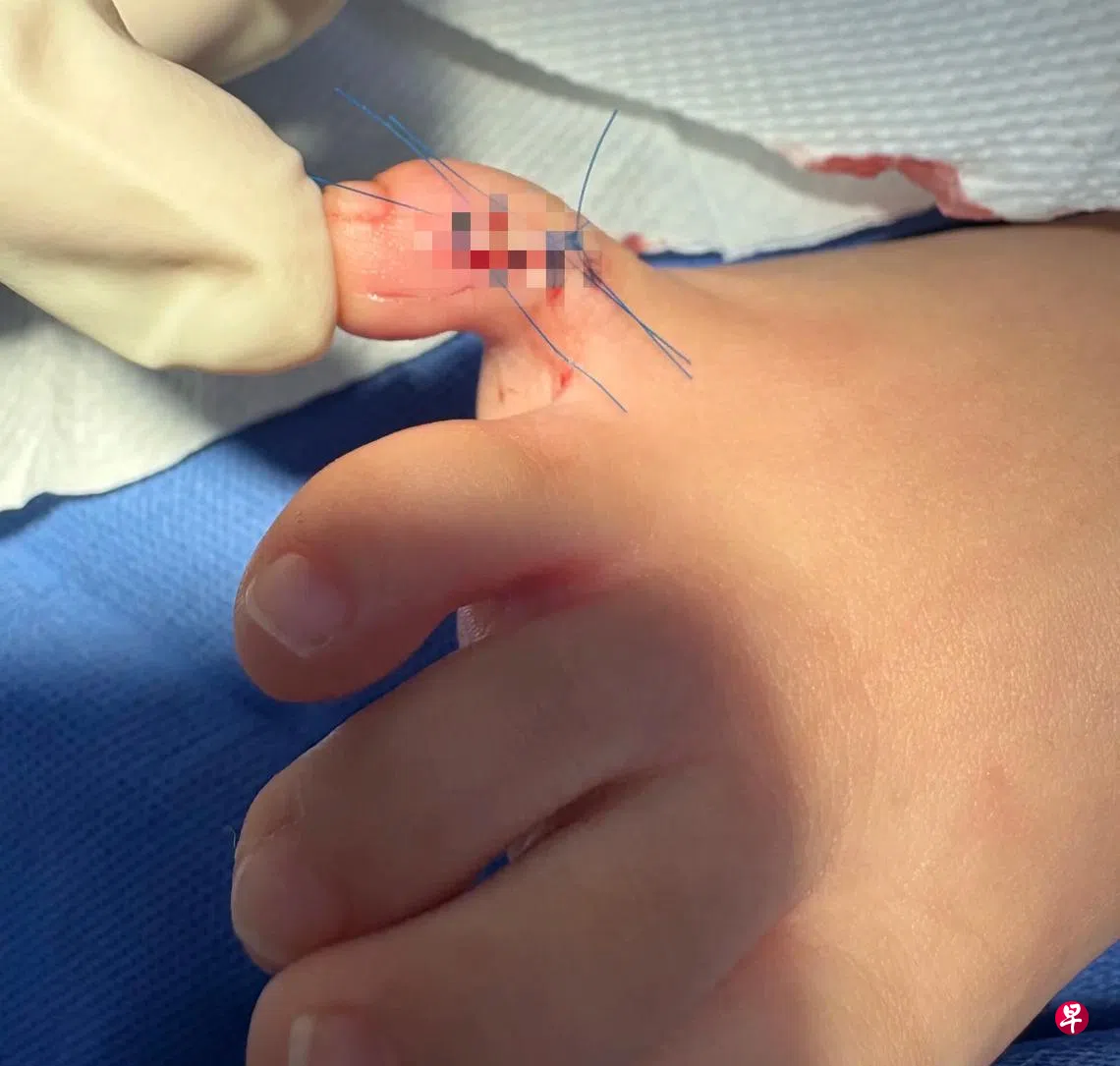她指当天天气炎热,一家人选择就近的俱乐部用餐,随后她带着女儿到游泳池内玩耍。不料途中女儿突然说自己的脚很痛,她立刻抬起女儿的脚检查,赫然发现女儿脚趾血流不止。