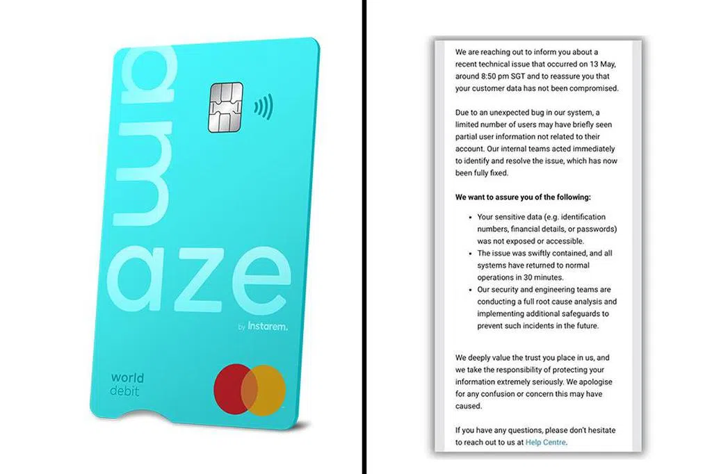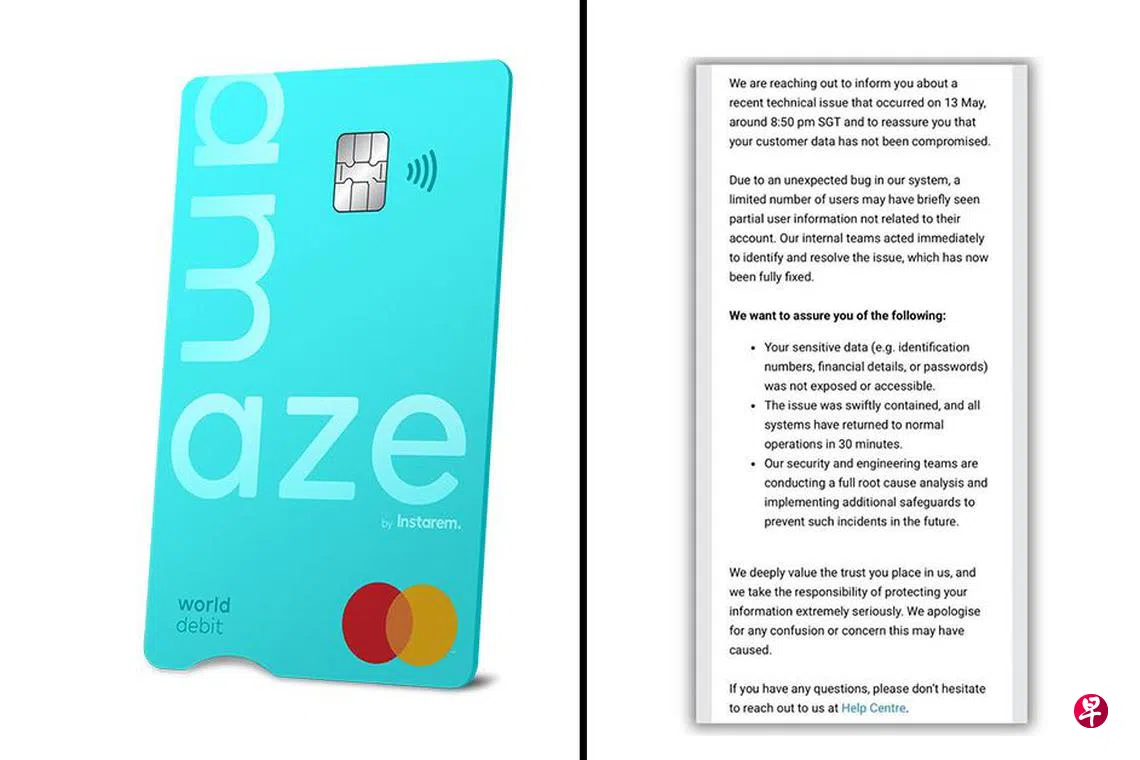 星期二(5月13日)晚上9时起,一些Instarem用户在网上称,他们在登录手机应用后看到其他用户的个人资料,例如全名、电子邮件地址、Amaze卡资料和交易记录等,服务在大约一小时后才恢复正常。管理Amaze的公司Instarem过后发电邮给客户说,公司正在调查事件。