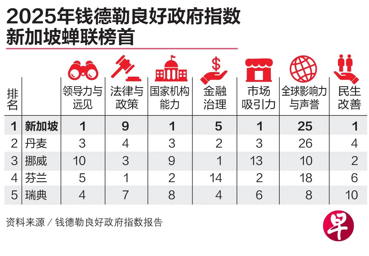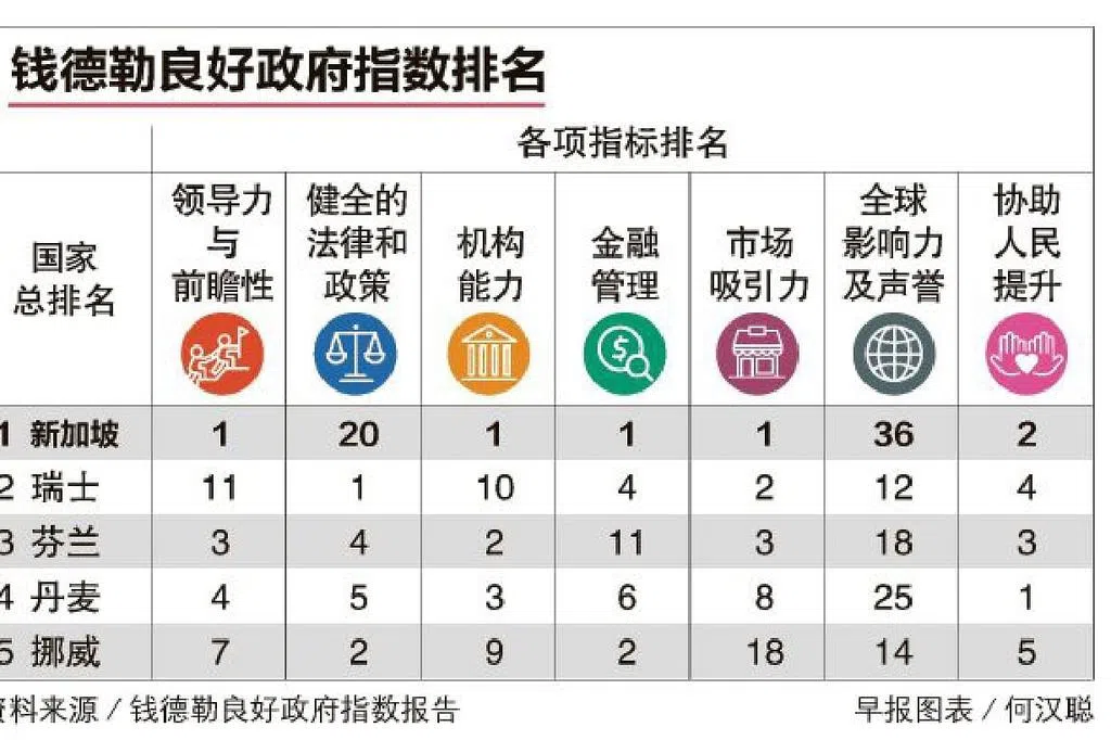 院方依据七项指标——领导力与远见、法律与政策、国家机构能力、金融治理、市场吸引力、全球影响力与声誉,以及民生改善,评估120个国家政府的整体治理能力。