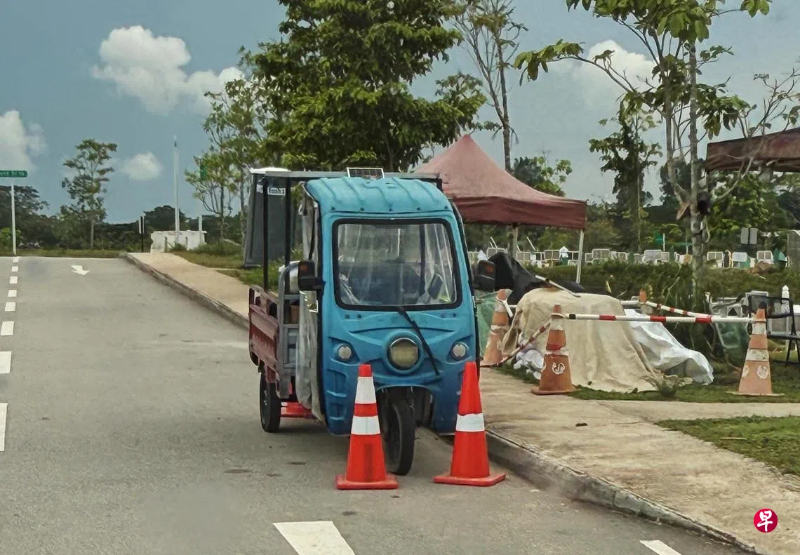 据读者提供的信息,这些三轮车5月初已出现,从外观上看和平时路上的车辆不同。“这些车看起来不符合规则,希望当局能够及时取缔。”几天后,读者又发现更多三轮车,整个坟场范围内至少出现五六辆。