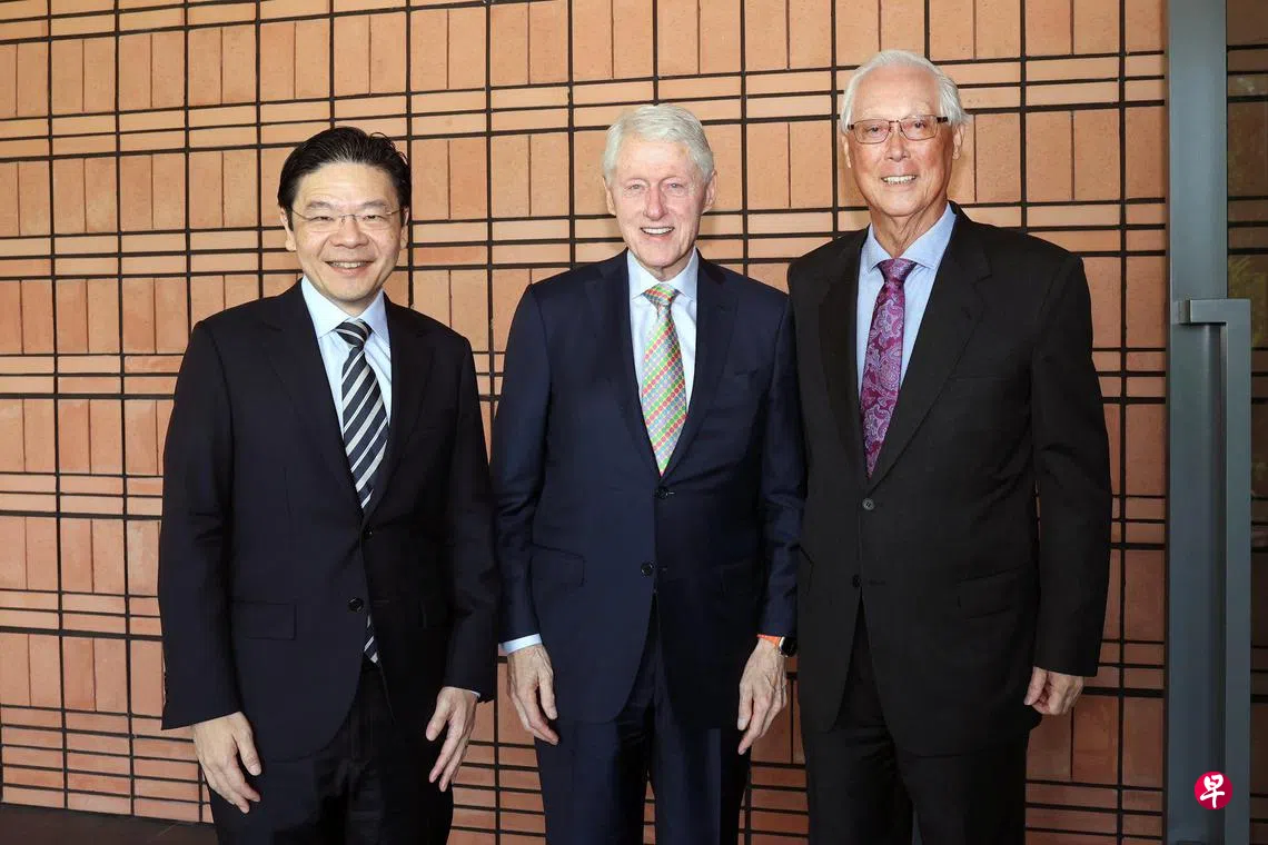 荣誉国务资政吴作栋星期三也和克林顿会面,两人同黄总理合照。
