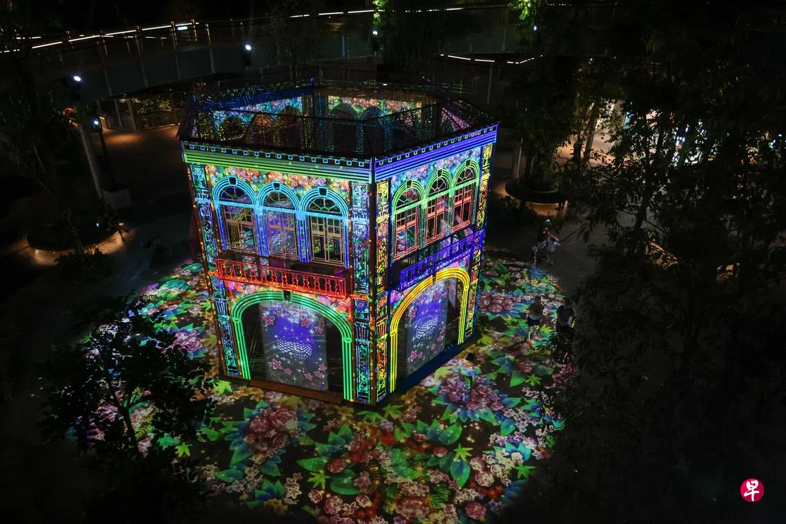 灵感取自土生华人的房子、高达7.2米的艺术装置将作为视觉焦点,结合投影艺术与大型结构设计。“房子”白天为拍照热点,夜晚则呈献灯光故事秀,营造震撼的沉浸式体验。整个展区重点提供感官体验,从视觉、听觉、味觉到触觉,唤起公众对本土文化的情感共鸣,将传统文化带到眼前,触手可及。