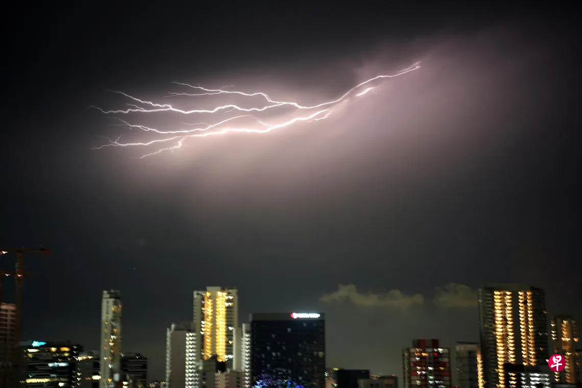 新加坡中区惹兰勿刹一带的组屋上空,星期六(5月24日)晚上约7时35分,出现几道闪电划过天际。