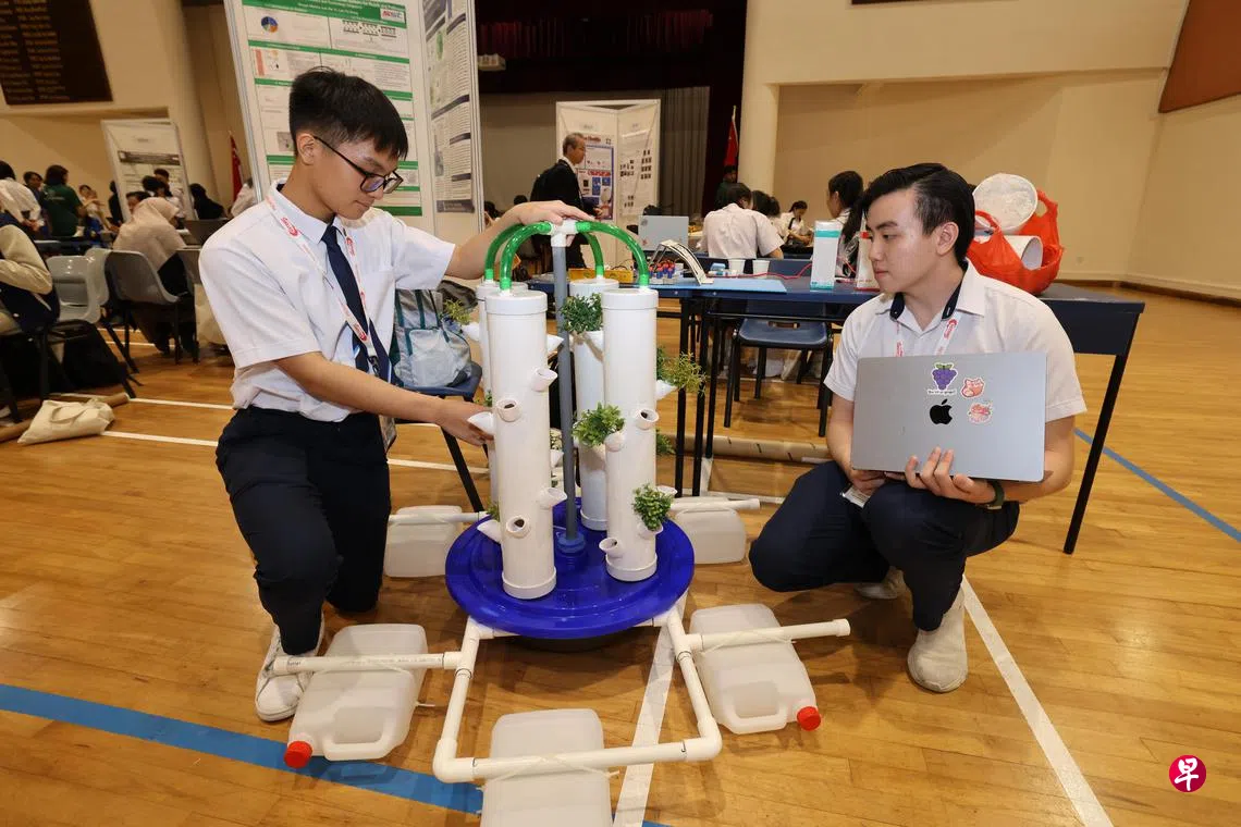 由教育部与国家初级学院联合主办的第二届新加坡国际科学、技术、工程与数学(STEM)创新挑战赛星期四(5月29日)举行开幕典礼,吸引46所本地学校及18所海外学府参赛。尤索夫依萨中学的中三学生方势松(14岁)和中四学生杜孟达(Do Manh Dat,17岁)组成一队,携水上种植系统参赛。
