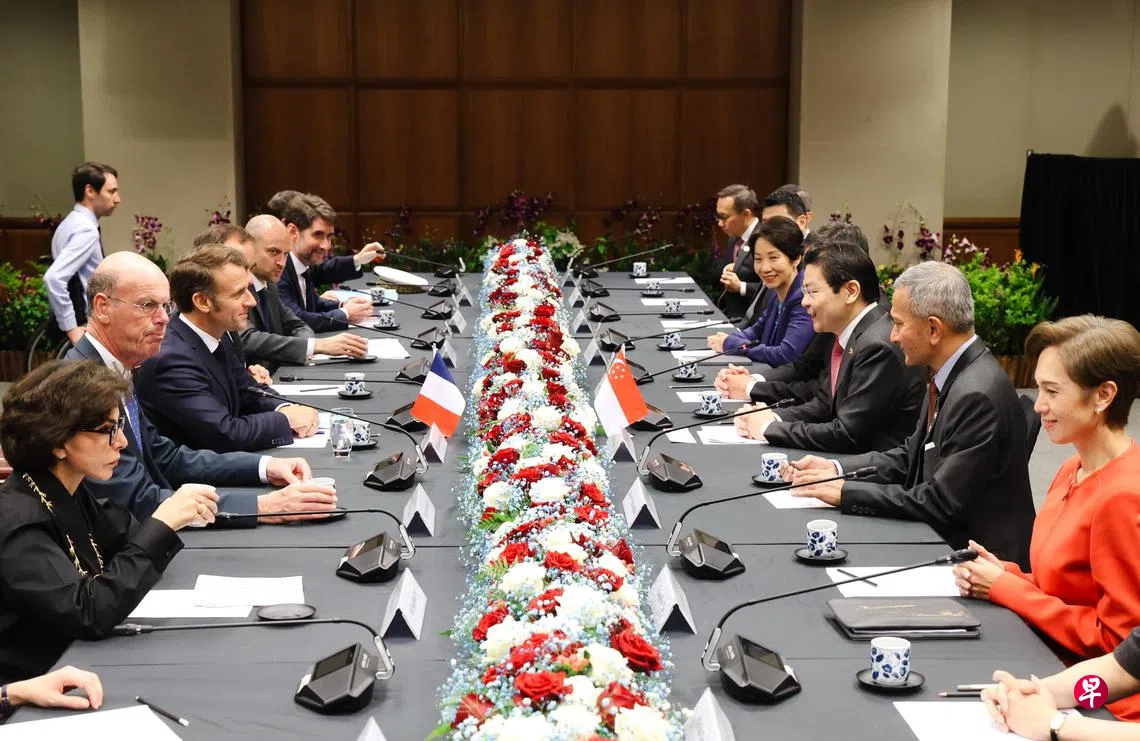 法国总统马克龙对新加坡展开国事访问期间,两国宣布新法升格为全面战略伙伴关系。星期五(5月30日),在马克龙总统和黄循财总理的见证下,双方官员交换13项协定和谅解备忘录,深化在核能、数码与人工智能、防务、安全、职业与技术教育、引渡框架、航空和海事等多个领域的合作。