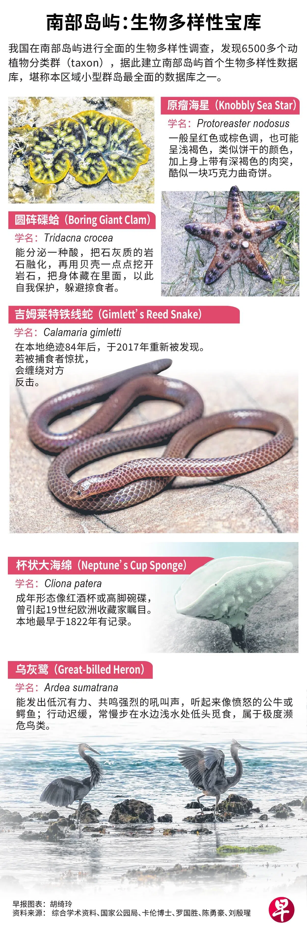 我国南部岛屿是重要的生物栖息地,孕育超过6500个动植物分类群,其中鸟类尤其多元,共有172种本土鸟,占新加坡总鸟类的四成。