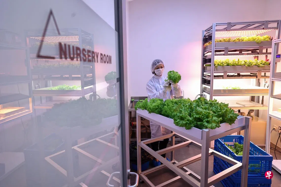 提供智能生活方案的台达新加坡,在办公楼藏着一片绿色天地,那里设有24个多层种植盆、宽9.8平方米的垂直农场。通过高科技配置实现自动化种植,可助力耕地有限且人力水源珍稀的新加坡,实现30.30愿景。