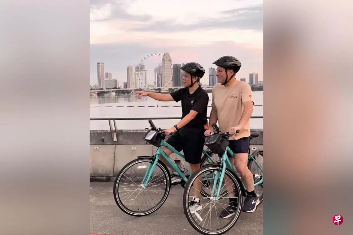 陈振声星期天早晨也与马尔斯一同在滨海湾一带骑脚踏车,并在脸书上载两人骑行的视频。
