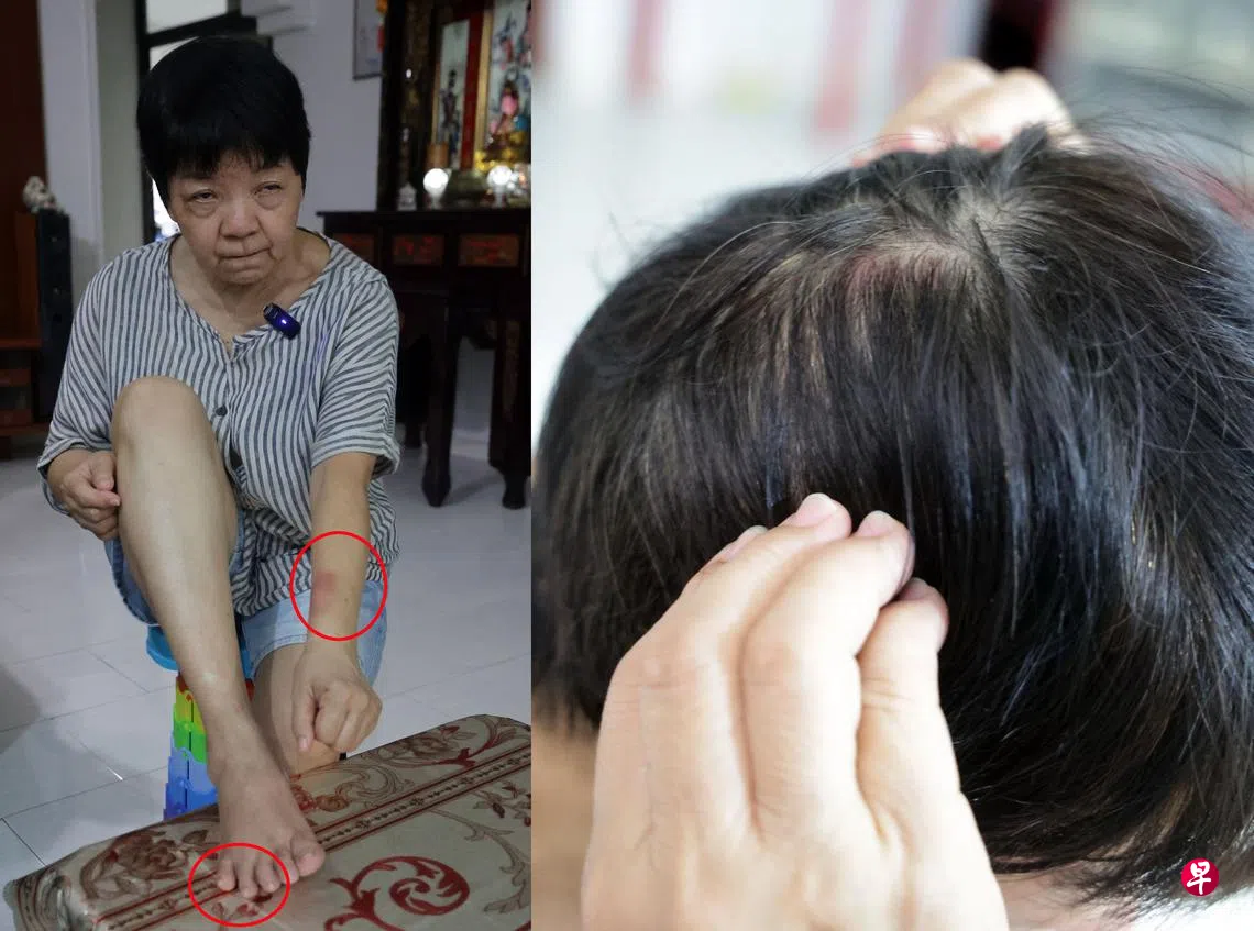 “我觉得钱应该平均分配,毕竟我们小时候也有帮家里做生意。我去找他讨钱,他老婆竟然拿铁锤出来,甚至要用杀虫剂喷我,当时我拿着雨伞自卫。后来我弟弟一把推我,我整个人一楼的楼梯滚下来,手脚淤青,头也撞到肿了一块。”