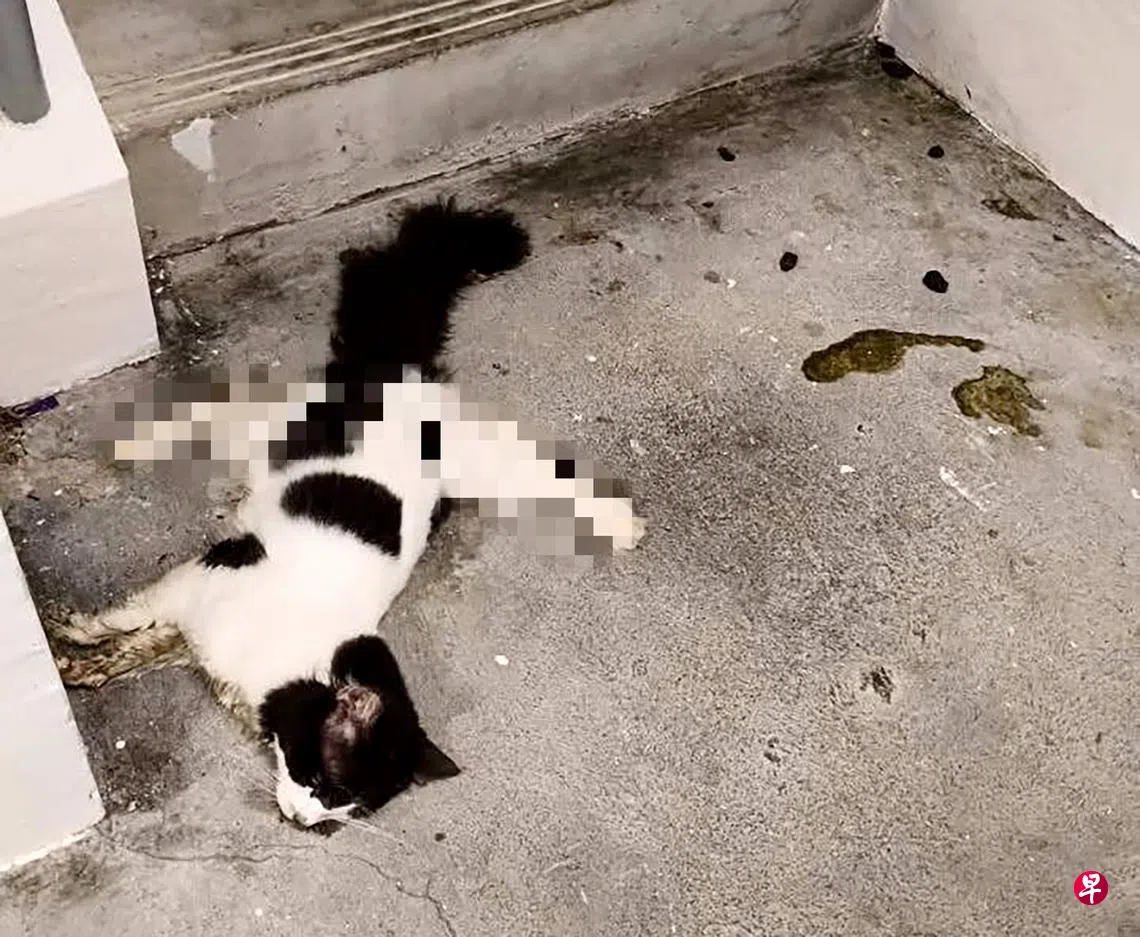 “这只猫咪死的姿势和地点很诡异,我们怀疑是不是有人将猫咪从高处摔下,然后又将尸体移到组屋楼梯口。”