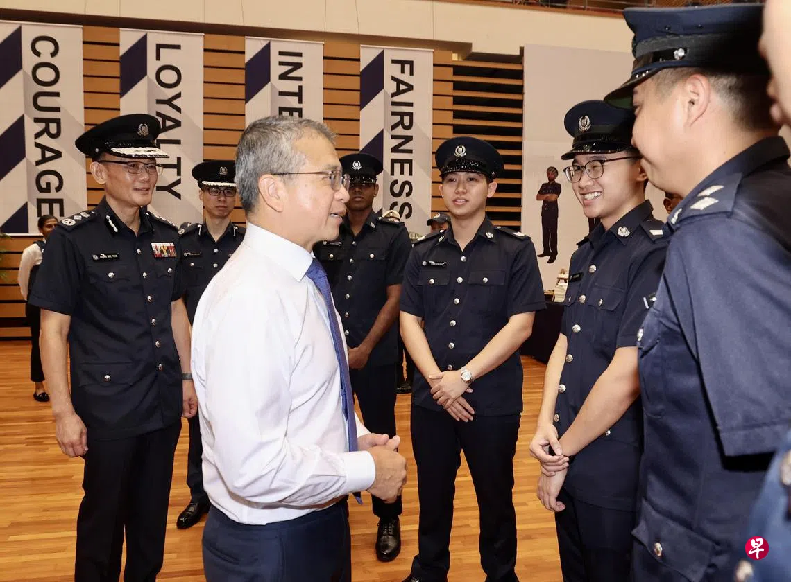 他鼓励警员们在面对新挑战时,继续秉持敬业精神与专业素养投入工作。“请始终坚守誓言,不负国家赋予你们的信任与尊重,守护新加坡的安全。”