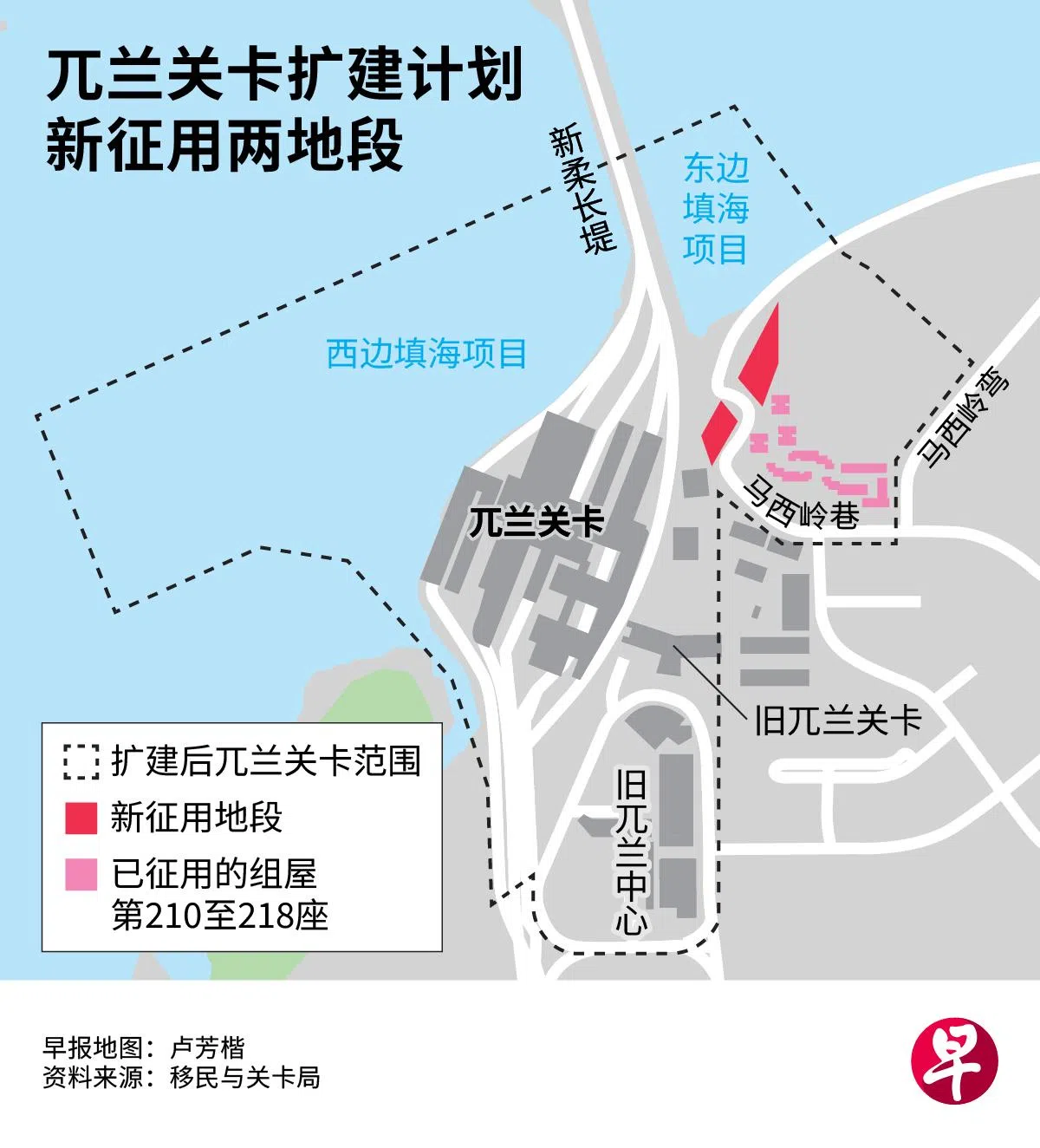 文告说,此次土地征用是移民局在未来10至15年内,分阶段重建和扩建兀兰关卡计划的一部分,旨在“为这个陆路关卡长期的拥堵问题提供长期解决方案”。