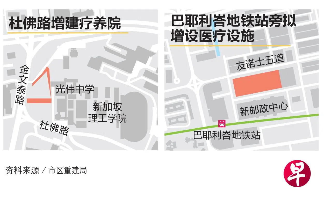 为应对我国人口持续老龄化的需求,杜佛路一带将增建疗养院,巴耶利峇地铁站旁也拟增设医疗设施。此外,卫生部也计划在欧南园学院路的总部周围兴建办公大楼,集合更多属下机构。