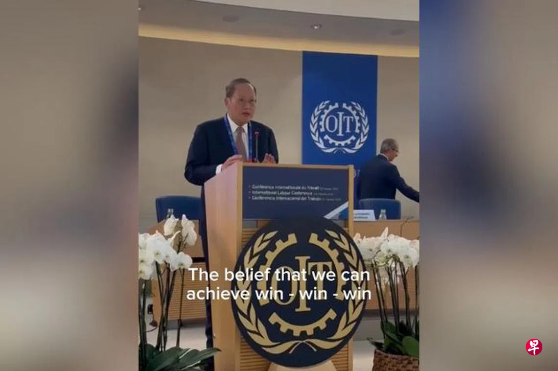 人力部长陈诗龙医生星期一(6月9日)在国际劳工组织于瑞士日内瓦举行的第113届国际劳工大会上发言时指出,国际劳工组织总干事在题为《就业、权利与增长:加强三者之间的联系》的报告中,印证了新加坡长期以来的认识,也就是优质就业、劳工权利和经济增长,不是彼此对立的目标,而是包容进步不可分割的支柱。