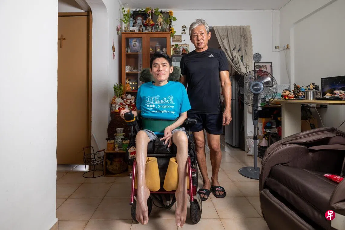 黄威翔今年37岁,因患肌肉萎缩症从15岁起就辍学在家,日常起居几乎完全依靠父亲黄龙豪(59岁)的照顾。