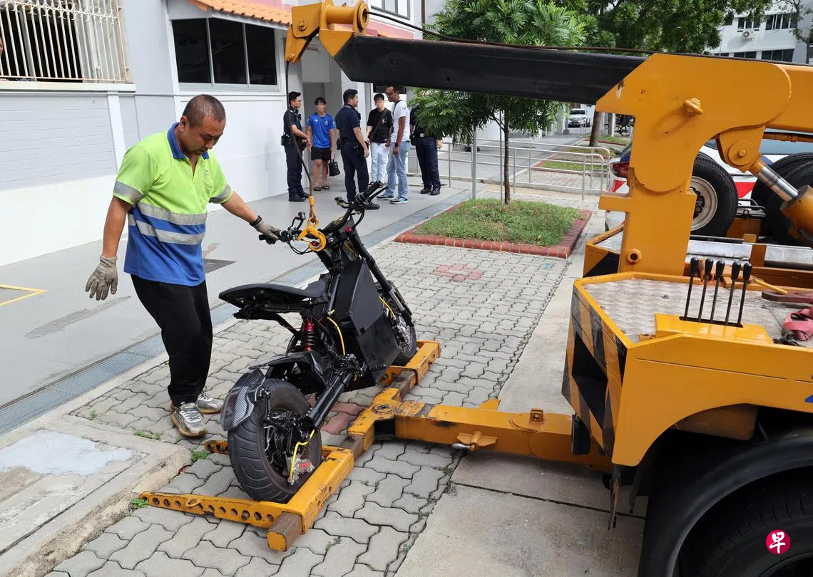 两少年疑涉违例改装个人代步工具(PMD),在组屋底层巧遇警员时,竟心虚逃走,大批警员见状后追上,最终将涉事个人代步工具扣查。