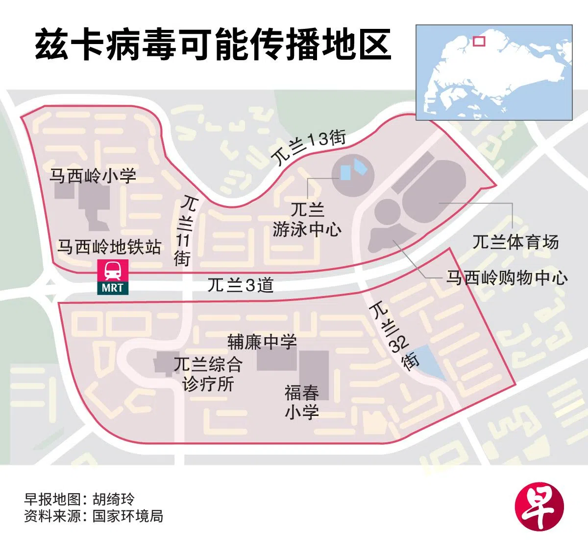 两起本土兹卡(Zika)确诊病例居住地点分别是兀兰11街和32街。国家环境局星期四(6月19日)在脸书贴文说,当局对周边区域进行蚊虫及废水检测时也发现兹卡病毒,显示病毒有传播风险。