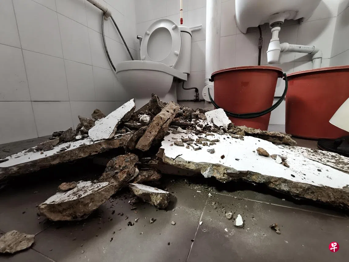 建屋局解释,水泥剥落源于碳化过程,是一种自然劣化现象。天花板的钢筋会腐蚀、水泥会开裂,尤其常见于浴室和厨房等潮湿环境。一旦发现裂缝或孔洞,居民应尽早封补,定期为天花板重新上漆,以防湿气和二氧化碳渗入。