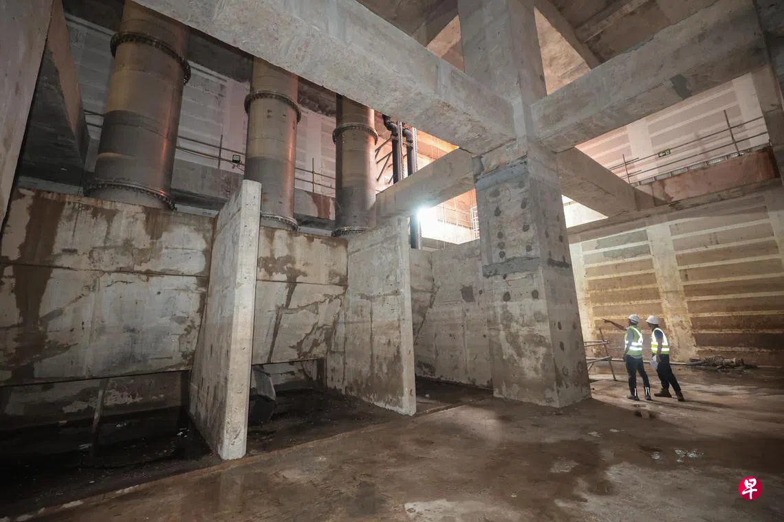 储水池深约11米,当水位达到4.5米时,水泵便会自动启动,将雨水抽入梧槽水道下游,最终流向滨海蓄水池。