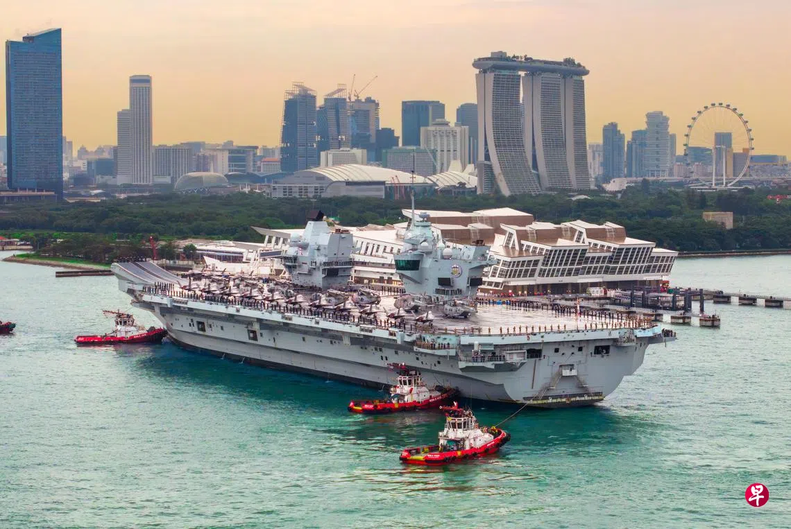 英国皇家海军航空母舰威尔士亲王号,星期一(6月23日)率领航母打击群抵达新加坡,停靠滨海湾游轮中心展开访问。这是首次有航母停靠滨海湾,与新加坡的城市天际线相互映衬,寓意新英防务关系迈入新阶段。