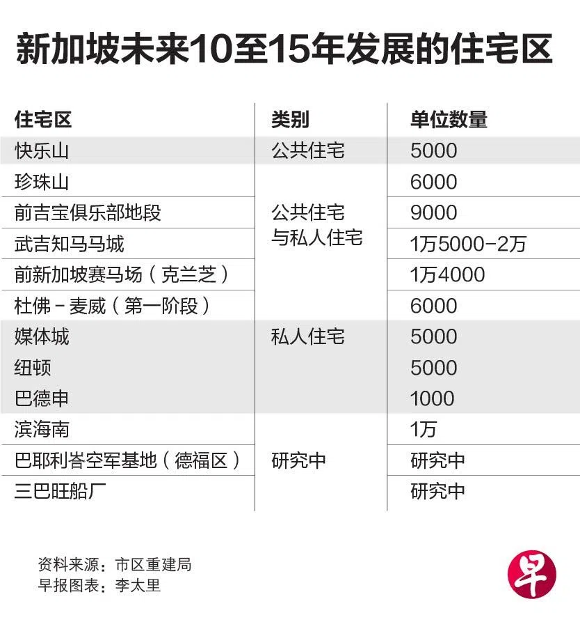 吉宝俱乐部前址的地段将率先发展,预计建造9000个新住宅单位,其中包括6000个组屋单位。