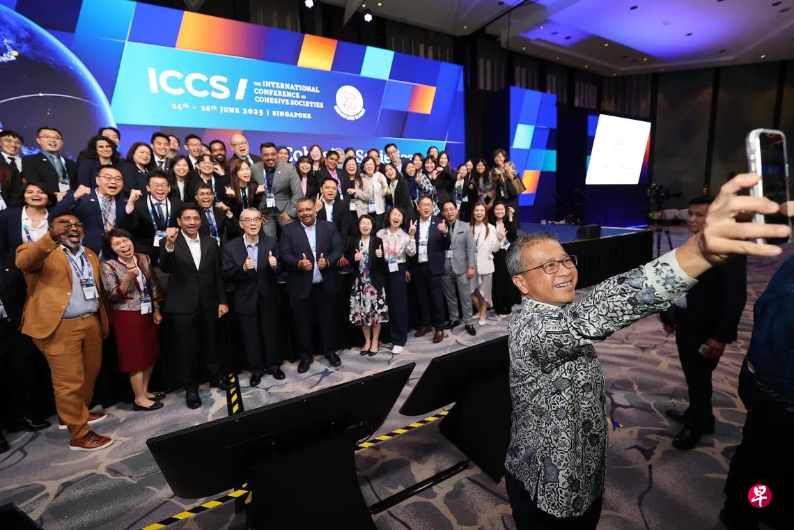 唐振辉星期四(6月26日)下午在第三届社会和谐国际大会发表闭幕辞时,总结与会者三天来讨论建构和谐社会的观点。他强调,社会凝聚力不能交托天意,指望它会自然出现。尤其对多元社会而言,更是必须下苦功用心培养和经营社会凝聚力;这包括尝试从少数社群的角度去看问题,而不只是关注多数群体的视角。