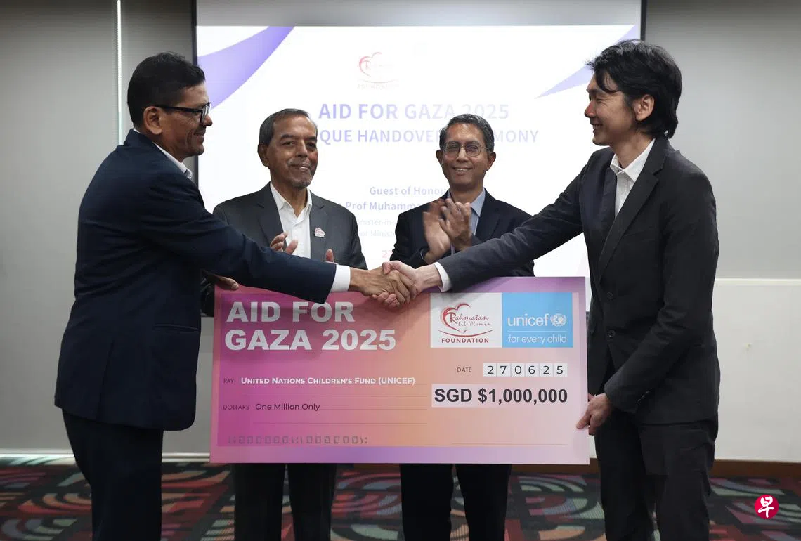 全福基金会(Rahmatan Lil Alamin Foundation)今年2月到4月发起第四轮加沙筹款活动,共筹得超过240万元善款。基金会星期五(6月27日)举办支票转交仪式,把其中100万元交至联合国儿童基金会(UNICEF)。这笔款项将用于为加沙人民,尤其是流离失所者,提供粮食、饮用水、医疗援助,以及教育等基本需求。