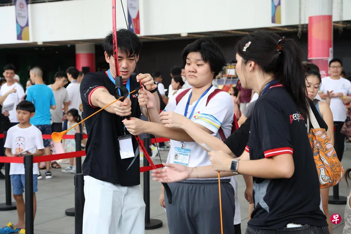新加坡智障人士福利促进会(MINDS)星期六(6月28日)在榜鹅综合社区中心主办运动嘉年华,吸引超过1000人出席。公众可以参与射箭、迷你高尔夫球、投球等活动,以及购买MINDS受惠者制作的手工艺品、食品等。现场也举行健康讲座,并介绍MINDS的援助服务。