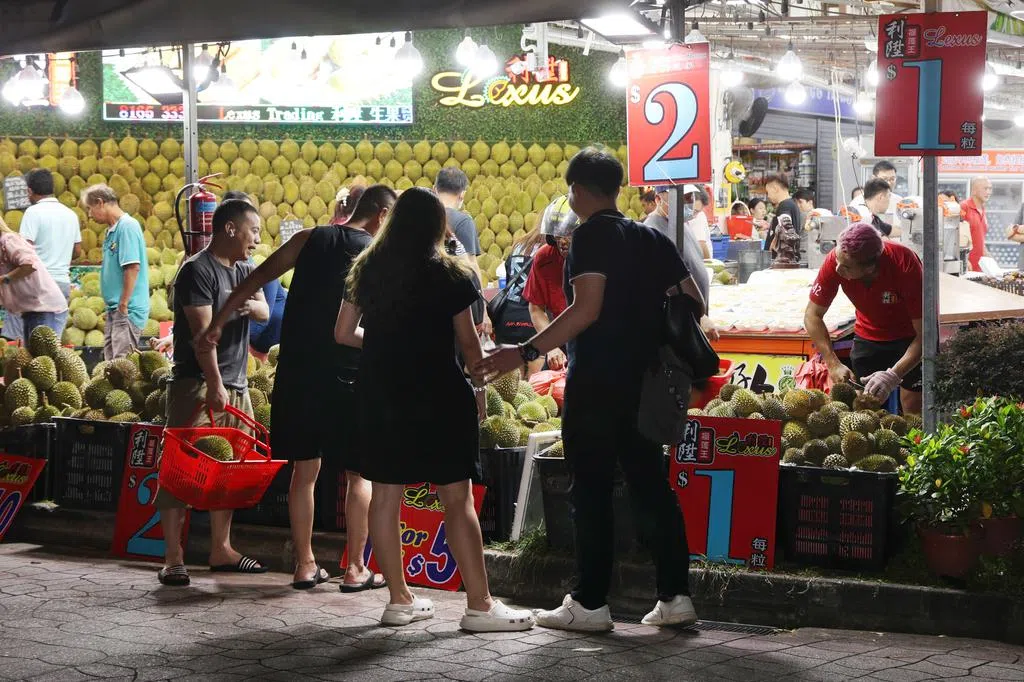 榴梿季来袭,全岛榴梿摊掀起价格战!裕廊一摊位推出“每个2元”的低价,吸引约70名公众冒着烈日排队抢购。摊贩高喊:“我只赚一块钱!”