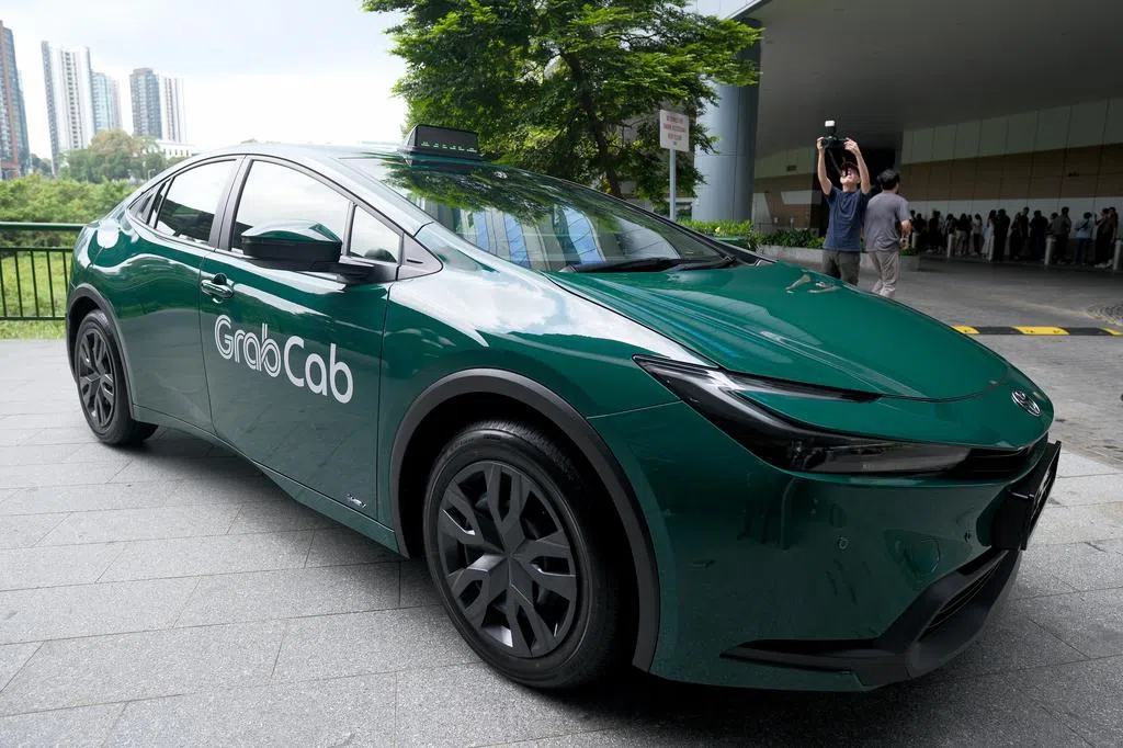 GrabCab的首批宝绿色的丰田普锐斯(Toyota Prius)混合动力德士,星期三(7月2日)中午从纬壹科技城(one-north)的Grab总部出发,标志着这支新德士车队正式投入服务。30多名GrabCab司机参与仪式,包括首批出发和等候领取新车的司机。