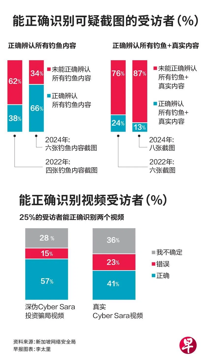 新加坡网络安全局最新调查发现,78%的受访者有信心辨识出深伪内容,但接受测试后,只有25%正确分辨出真假。有专家认为除了要提高公众的识别能力,还要构建多层防线,加强整体社会对网络诈骗的防御。