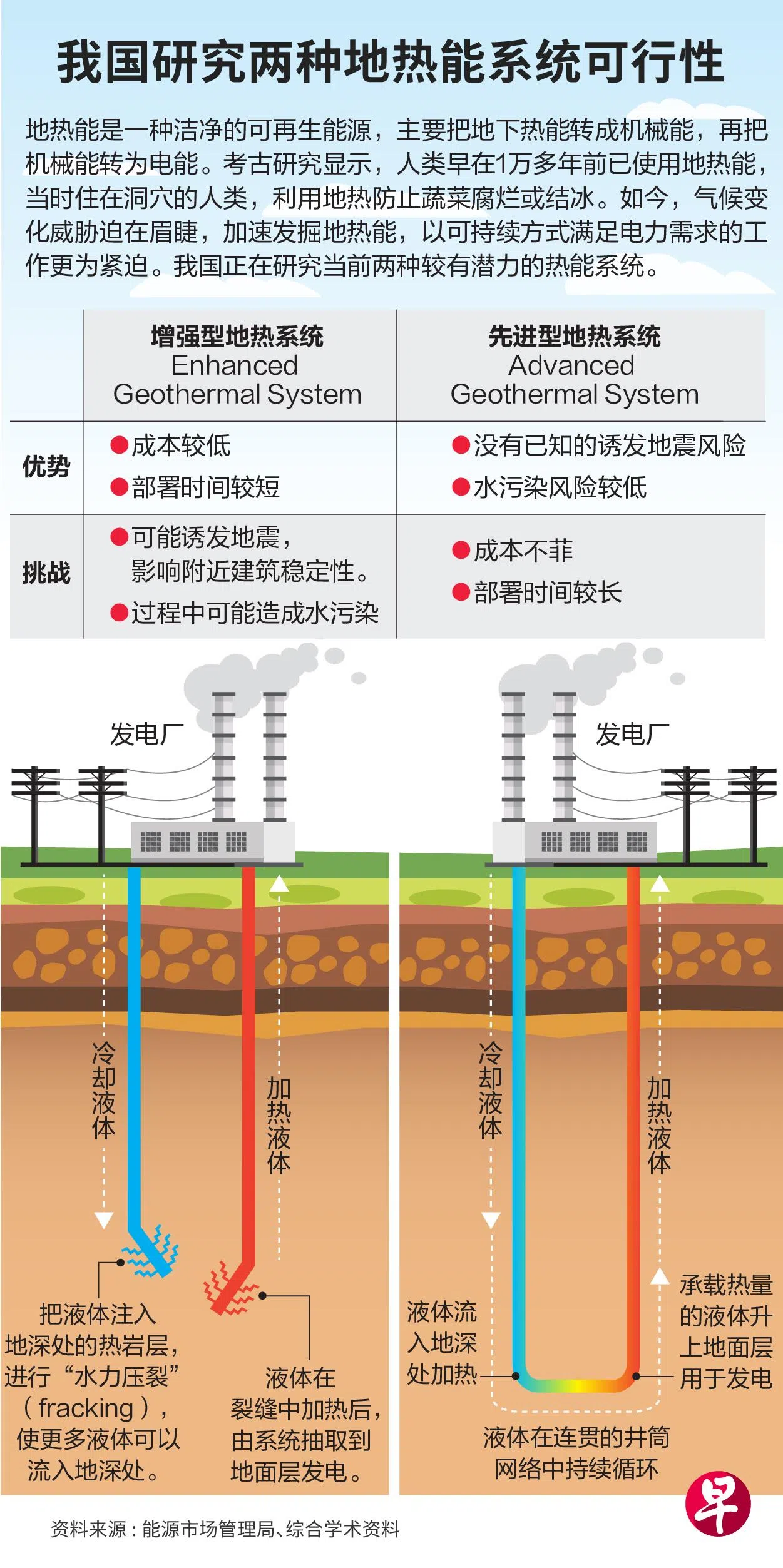 他指出,早前的挖掘工作发现,我国地底下其实有断层,因此不适合采用增强型地热系统,因为这个系统是以高压把液体注入地深处制造裂缝,可能诱发地震,从而影响附近建筑的稳定性。