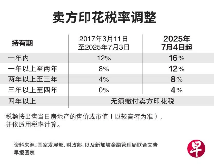 国家发展部、财政部和新加坡金融管理局星期四(7月3日)晚上11时35分发出联合文告宣布,调整住宅房地产的卖方印花税(Seller’s Stamp Duty,简称SSD)税率和房屋持有期(holding period),以抑制投机行为。