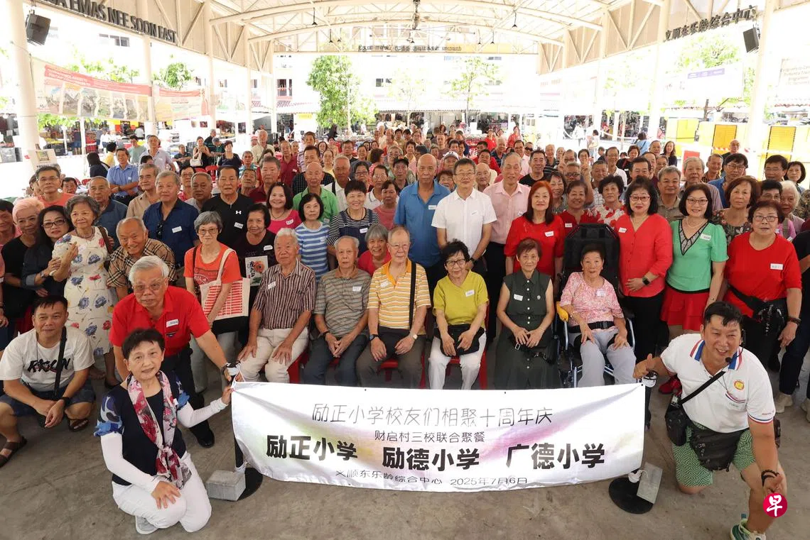 原位于今天义顺区的财启村三所小学——励正小学、励德小学和广德小学的240多名校友,星期天(7月6日)校友齐聚一堂,在义顺东乐龄综合中心举办第八次聚餐。其中包括八九位师长,以及励德小学最后一任校长何振玉。