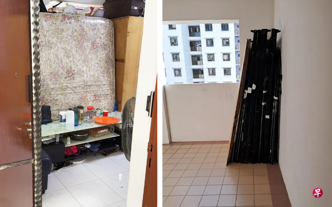 裕廊西居民申诉,邻居单位常有陌生男女出入,疑至少有10名租客非法入住。记者走访时,有租客称只是临时租个床位,屋内应该有八人。