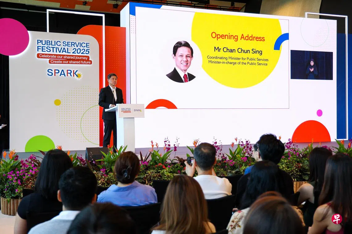 公共服务统筹部长兼国防部长陈振声星期二(7月8日)为公共服务节开幕时呼吁公务员,为进一步提升公共服务的素质尽力。