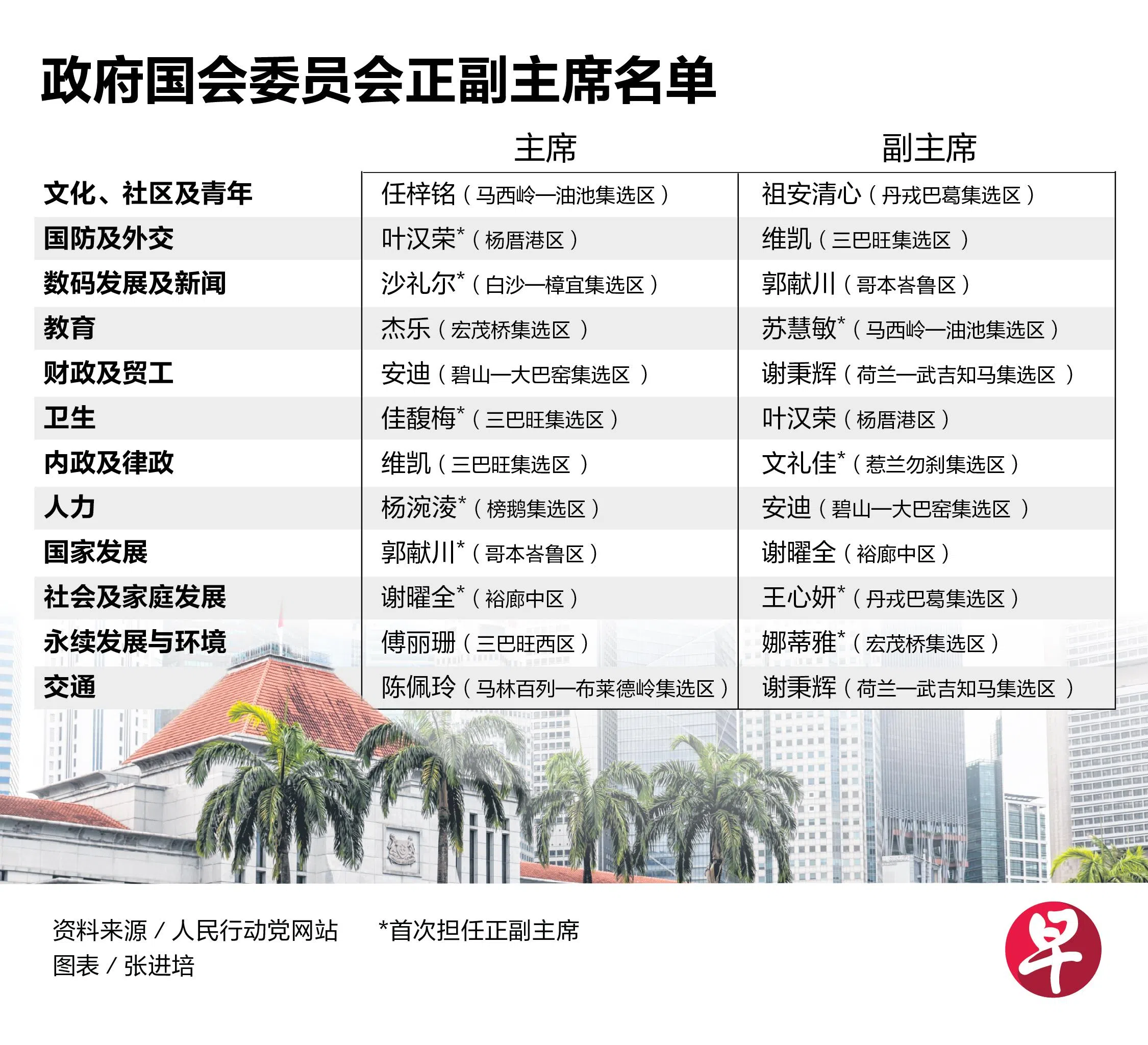另一个不同点是,上一届国会有四名新进议员获委为政府国会委员会副主席,这次所有委员会的正副主席皆由较有经验的议员担任。