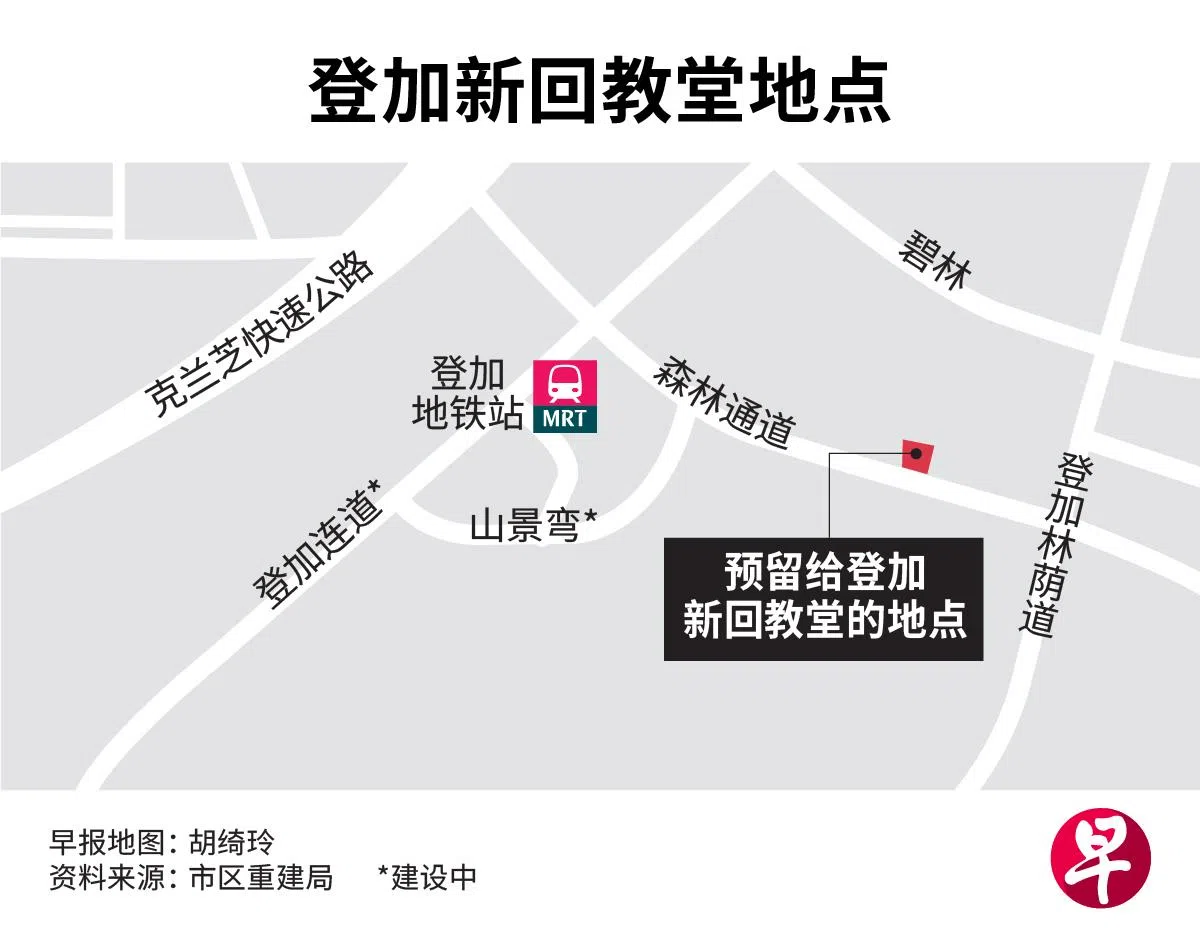 费绍尔星期五也公布了未来登加新回教堂的位置。他说,当局已保留登加新镇内、森林通道(Forest Drive)靠近登加林荫道(Tengah Boulevard)的一块土地,用以建造新的回教堂。