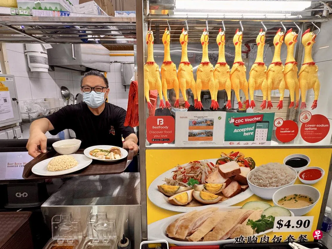 路过武吉巴督西小贩中心,一家鸡饭档挂满的“尖叫鸡”,很难不让人多看几眼。这些塑料玩具可不是老板的恶趣味,而是为了档口干净卫生的一番心思。