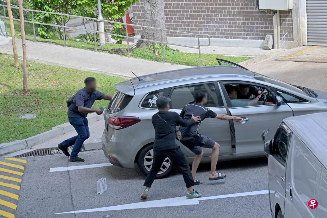 面对执法人员的围堵,男子突然加速想冲出包围。其中一名执法人员当机立断,打开汽车驾驶座旁座位的车门并跳入车内,迫使司机在约50米外停下。这名男子当场被制伏。