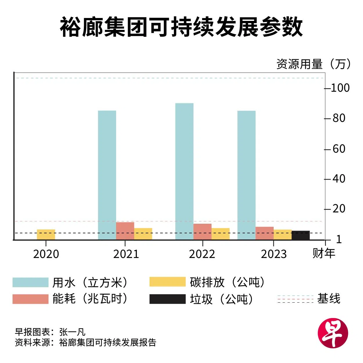 裕廊集团2023财年的能耗和用水量,分别为11万4281兆瓦时和85万7482立方米,都比基线低;不过,垃圾量则为3万6712公吨,比基线的3万2369公吨多了13.4%。