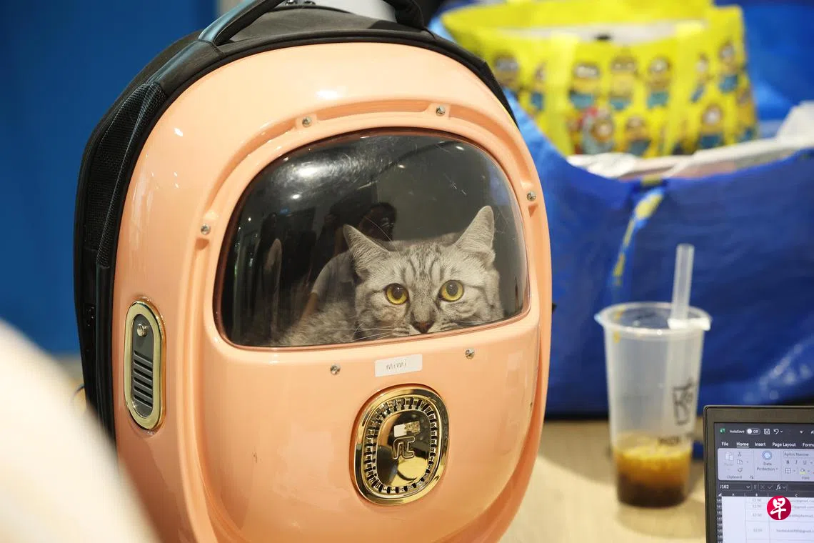 5月一个星期六的早上,好几十名猫咪主人静静坐在新加坡国立大学岭景寄宿型学院(Ridge View Residential College)门口,身边的婴儿车、背包里有着不同品种的“毛孩子”,有的安静,有的略显焦躁。