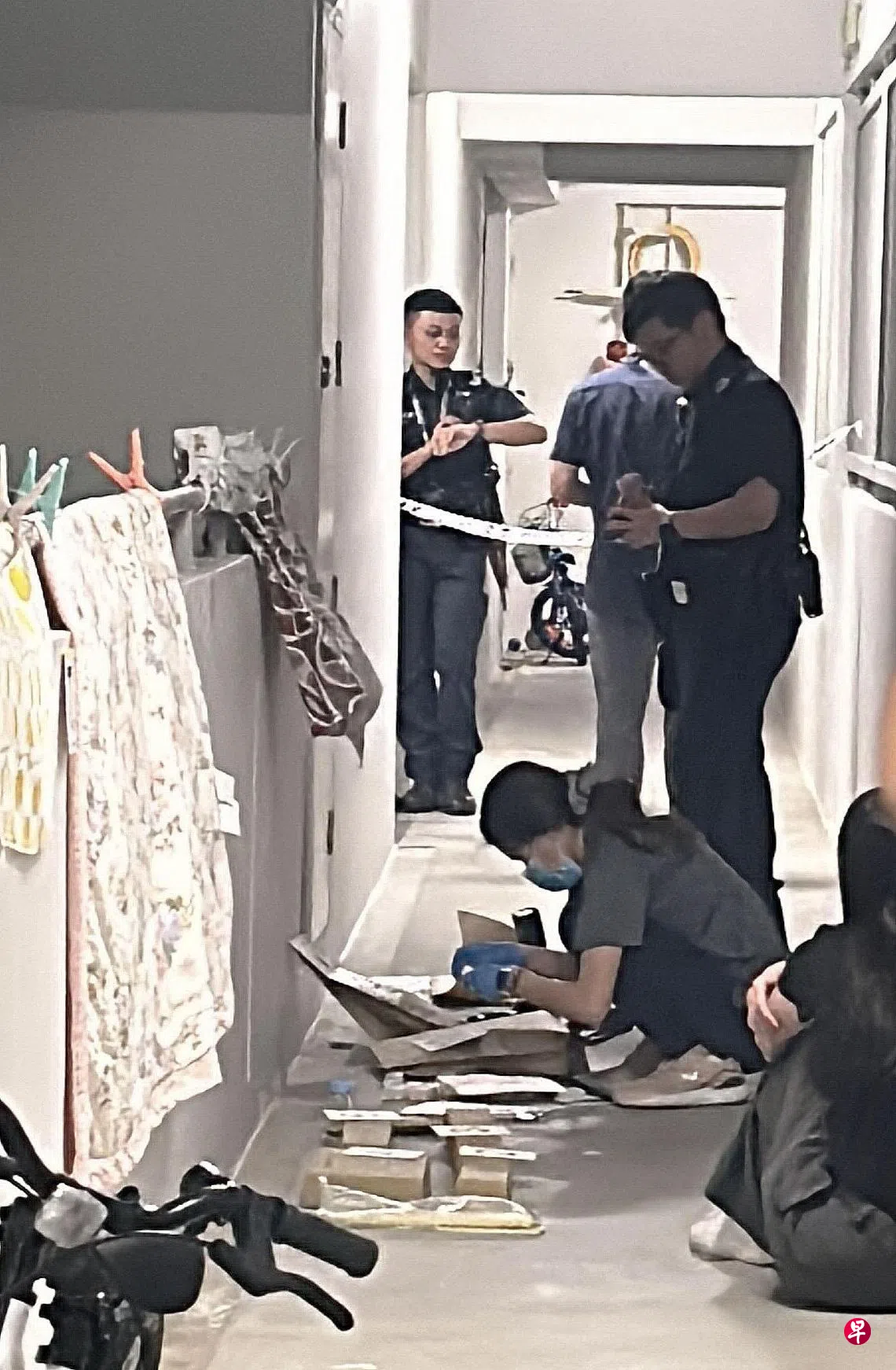 《新明日报》记者星期六晚上到场时,警方已大面积封锁组屋地面层,附近游乐场也拉起封锁线,禁止民众靠近。